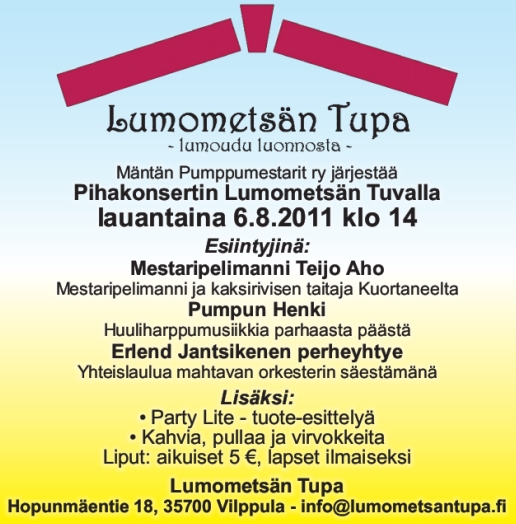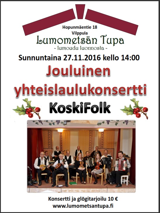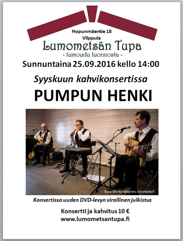 Konsertti toteutetaan kahvikonserttina Lumometsän Tuvan