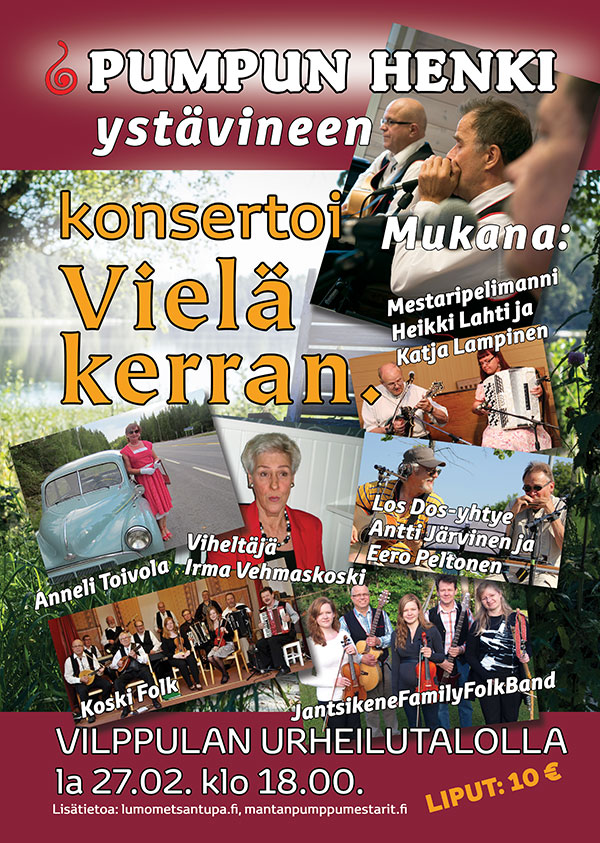 Kuorehiset, Vilppulan Harmonikat, Pumpun Henki ja Hannu Moksén Band.